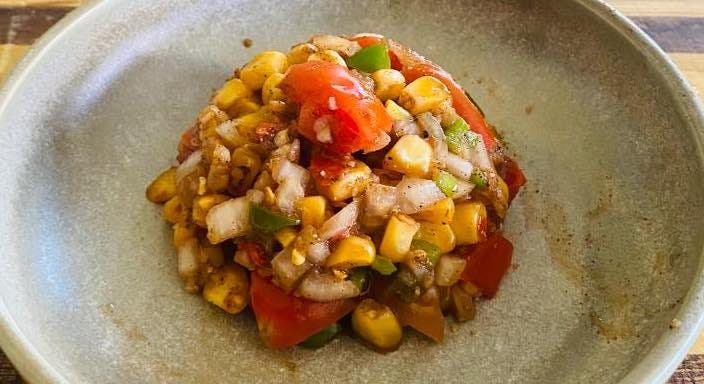 3. Chop chillies and slice roasted millies off cobb - add to lemon mixture. Allow to rest for 5-10 mins.